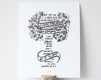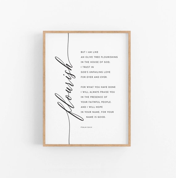 Psalm 52 8 9 Flourish Bible Verse Wall Art Scripture Print Etsy